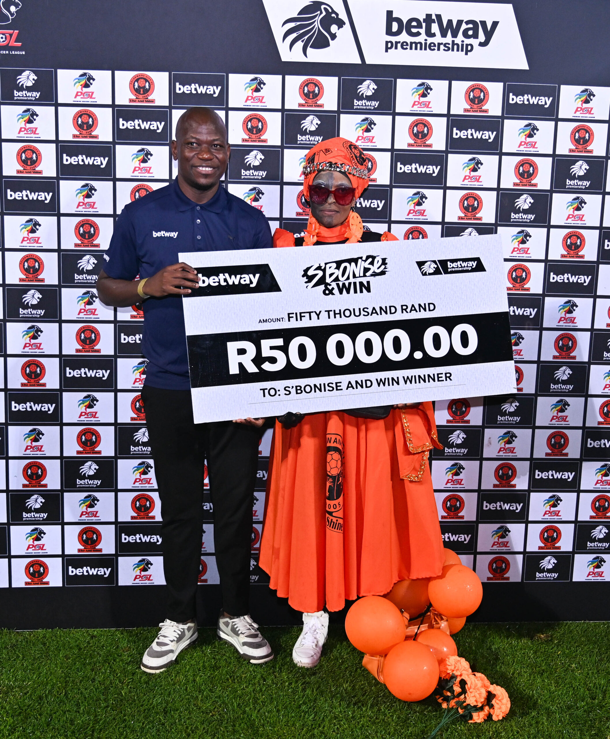 The excitement of the Betway Premiership S’bonise & Win campaign continued in Polokwane as supporter Maria Mokgahlane walked away with R50 000 during the Dial Up fixture between Polokwane City and Orlando Pirates at the Old Peter Mokaba Stadium on Wednesday evening. Maria became the eighth Dial Up winner of the season, with the prize doubled courtesy of her active Betway account.